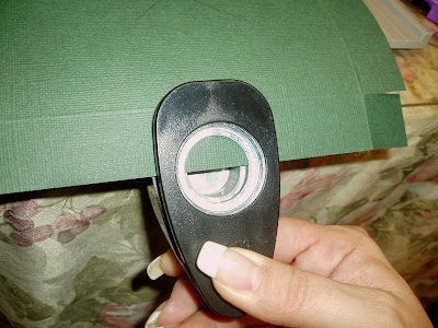 On that same side, use your circle punch to make a half moon cut on the edge so that the box can easily open with your thumb.